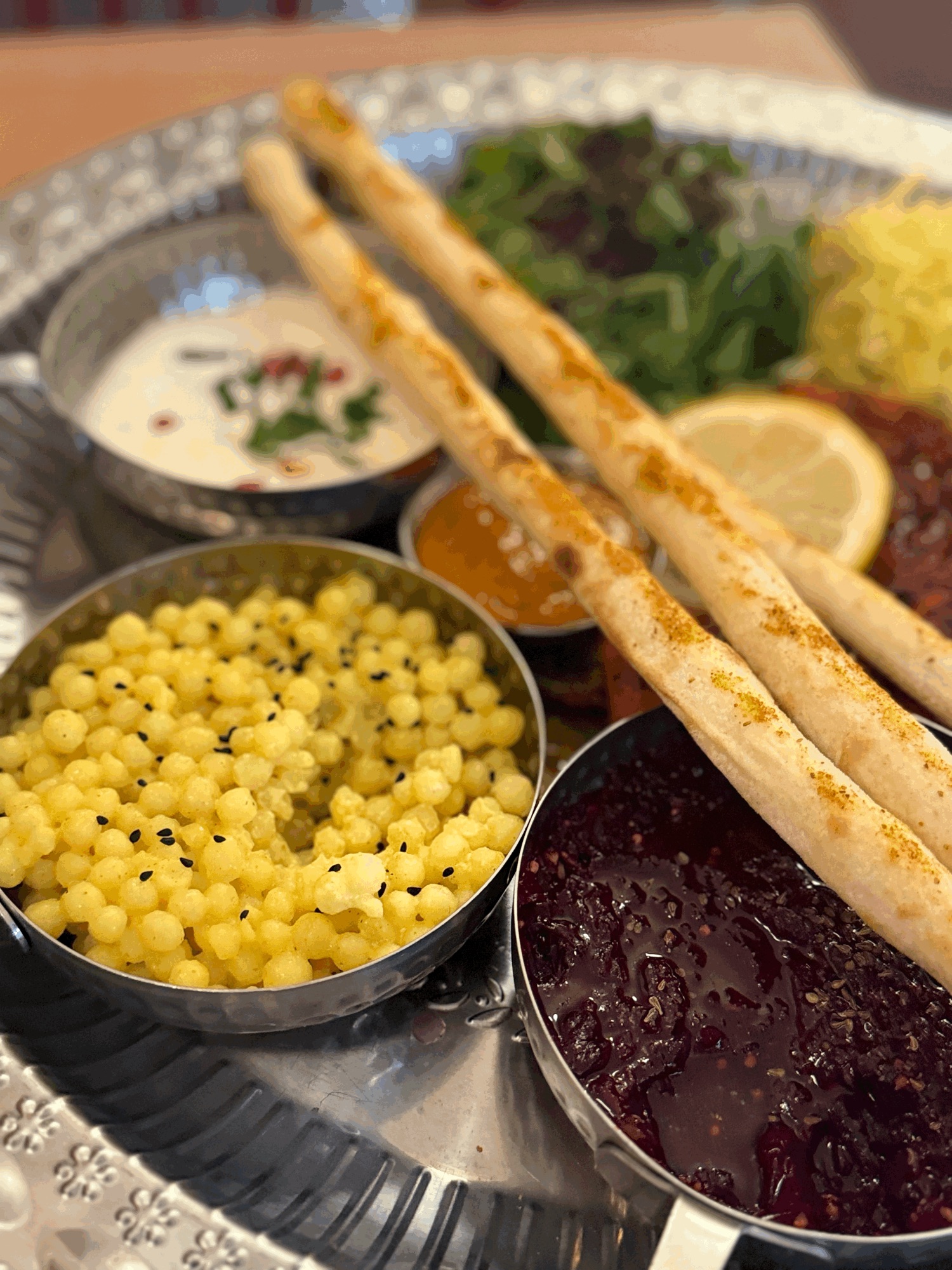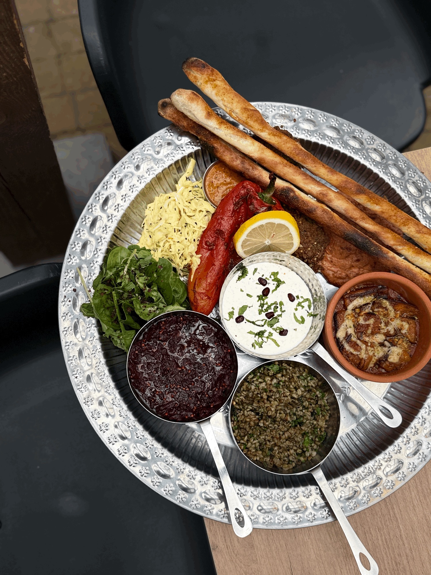 Mograbieh - Gruby Kuskus z Pszenicy / Papryka Mauryjska Na Ostro / Buraki Sefardyjskie z Patelni / Babaganoush - pasta z bakłażana / Zielone Sałaty z Winegretem