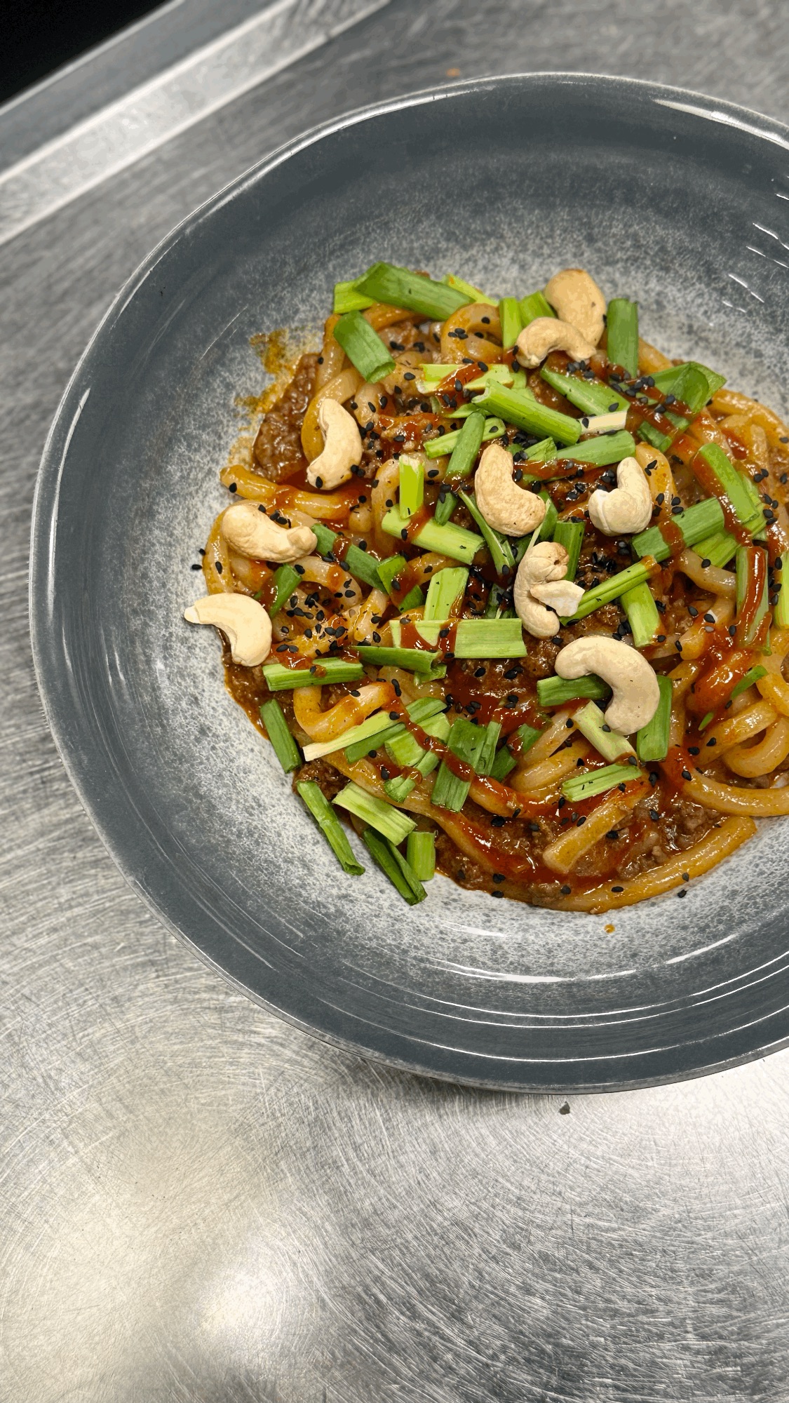 Szarpana Łopatka w Sosie Tamagoshi / Olej Sezamowy / Sengiri z Pora / Szczypiorek / Liście Kolendry / Biały Sezam Prażony / Chilli Taekyoung / Udon w Tajwańskim Sosie Orzechowym / Plaster Limonki